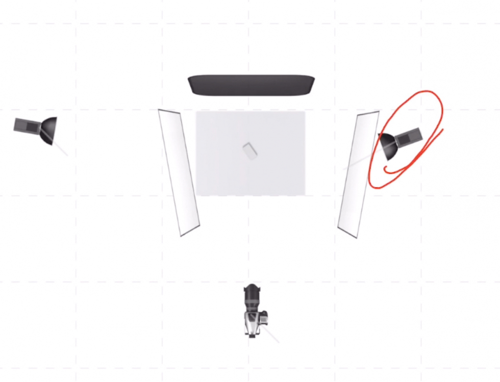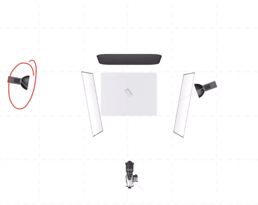第二盞燈呢(ne),放在眼鏡的兩點方向距離靠近硫酸紙高度,比第一個燈略低點兒燈頭向下倒,硫酸紙上就會産(chǎn)生一個向下的光線(xiàn)過渡,然後我們利用(yòng)葉子闆把光線(xiàn)控制到比較窄的範圍,這樣就可(kě)以同時确保眼鏡腿補光同時照亮下面的盒子,就不會有(yǒu)過多(duō)的光線(xiàn)跑到其它的位置。